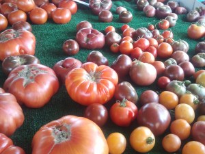 My next food project was an heirloom caprese salad…see what I did there? I made one for Cosmo and I to have for lunch. I stacked it up like a pretty little neapolitan and drizzled it with a bit of olive oil and balsamic. It was lovely and delish! However, I made a larger portion to take to a barbecue this afternoon and did a chopped version of the same for ease of use. Both were very yummy.More than just the purchases, our farmer’s market trips are truly about the experience. Walking together, being outdoors, purchasing from the people who grow/make the product, seeing uncommon varieties of common food and plants and just a general feeling of being closer to the process. These are the days that I hope rub off on the kiddos, these are the tiny moments that make life really good.