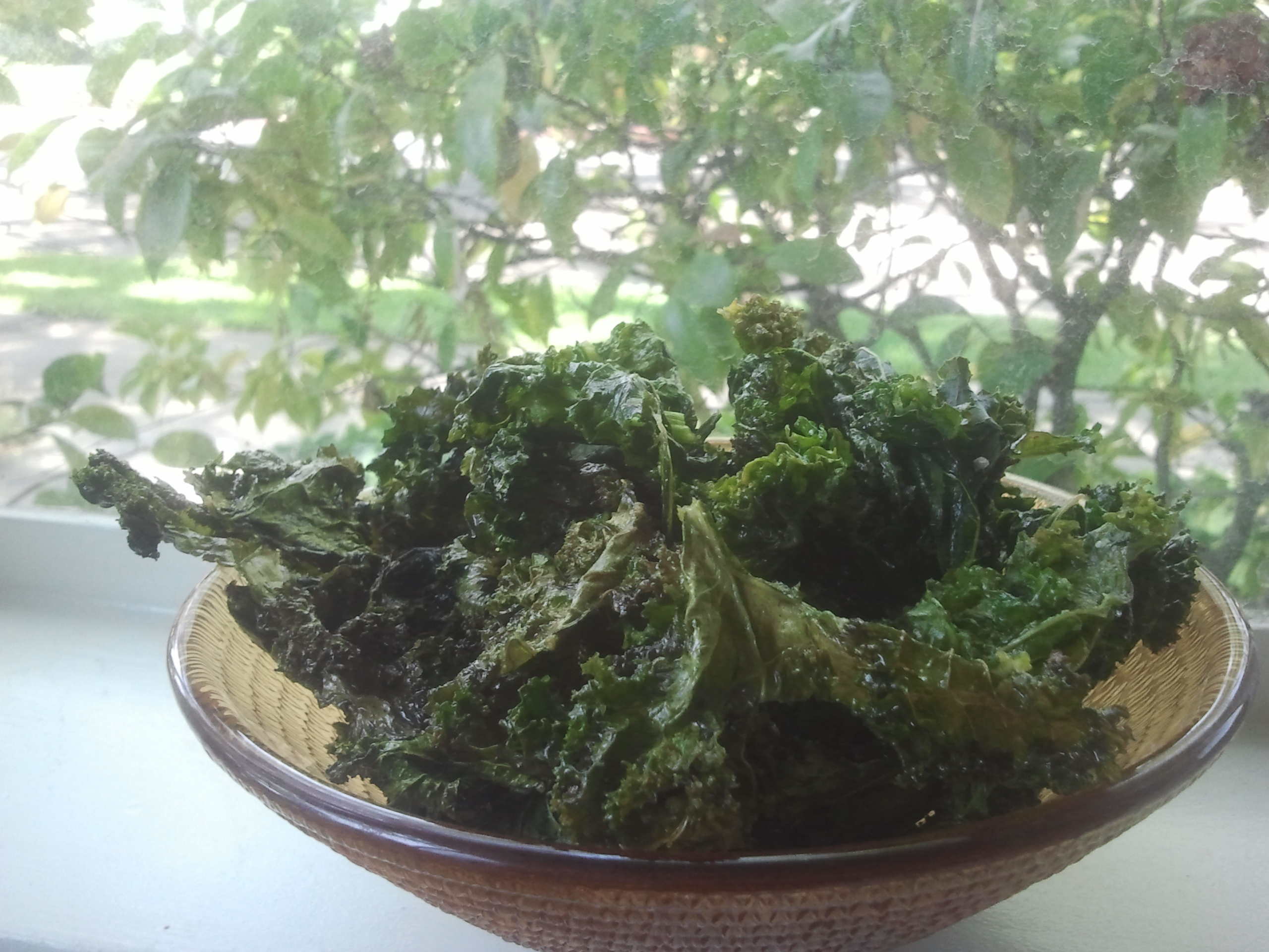 Once we returned home, I was chomping at the bit to get started. I began by making kale chips. A few weeks ago we spent a lovely afternoon with a girlfriend and her kiddos and she made these amazing “chips’! I was so pumped on my kid not only eating kale but reaching for more and more. Her recipe was simple. She washed the kale, and please do not take this step for granted. Today’s kale reaped a menagerie of tiny spiders, 3 slugs and one very very small snail. Once washed and dried, she ripped it into chip sized pieces removing the toughest parts of the spine. It was then placed in a bowl, generously drizzled with olive oil, sprinkled with sea salt and tossed to coat. Once covered, it was placed on a baking pan in a 375 oven for 15 minutes where it was tossed every five. It came out crispy and beautiful and far healthier than any potato chip. I experimented today and found that the addition of garlic powder was delicious but the chipotle chili powder over powered the natural leafy taste of the kale. $2 worth of kale yielded about 7 cups of chips.