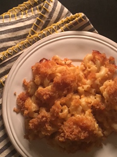 Mac n’ Cheese is synonymous with comfort food. The “blue boxed” variety has become a mainstay in many pantries. My own father even prefers it! YUCK! Hi Dad 🙂 My grandma’s mac n’ cheese is the best! With it’s creamy cheesy roux and buttery bread crumb topping, it tastes like love in a baking dish! There is a hilarious family story surrounding this dish too! My grandparents had a neighbor who was elderly and on a fixed income. She used to get assistance in the form of food, which in those days, I believe was called commodities. When she had surplus, she would often share it with her friends. One of the things she shared with my grandma was the cheese. It was regular cheddar cheese but was pale in color. It used to upset my grandpa when my grandma would use “the government cheese”. In fact, he spent more than one meal complaining about the government cheese ruining his macaroni! My grandma was a practical woman and likely told him to pipe down, that there was no difference! But, grandpa could tell, because it was pale yellow not the rich golden color he was used to. The next time we had mac n’ cheese, it was the familiar orangey gold and my grandpa went on and on about how much better it tasted and how he’d never eat that pale macaroni again! We all ate our dinners and enjoyed the wonderful food, reaching for just one more piece of that beautiful crunchy edge until we had our fill. The mac n’ cheese was NOT the best part of that meal, however. The best part for me came when we were clearing the table and with grandpa safely back in his chair, grandma pulled a small bottle of food coloring out of the pocket of her bib apron. She had a sneaky smile and held one finger to her mouth in the universal sign for “Sssshhhhh”. That was a special moment, both because we shared a secret and because she showed me that sometimes you gotta do what you gotta do! Thanks for that, grandma. I sure do miss you.