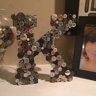 If you are using a free standing letter, be sure not to allow the buttons to go past the bottom edge to ensure proper standing. Once completely covered, allow to lay flat until completely dry.