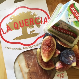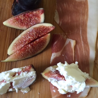 - Spread a Tbsp. or so of goat cheese onto a wedge of fig.