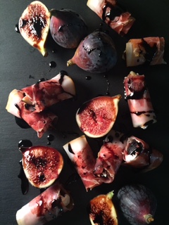 The next item on my agenda is a quick and easy appetizer, The Fig & Goat Prosciutto Wrap! The salty prosciutto, the tangy goat cheese and the sweet fig are a perfect combo, but when you add the balsamic reduction… it’s gonna knock your panties right off!