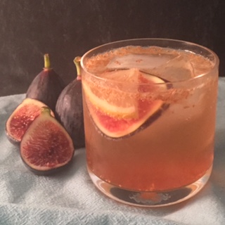 - Garnish with a slice of fig and a quarter slice of lemon.