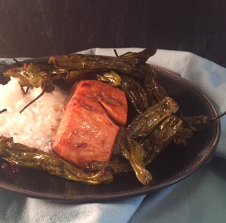 No, I did not forget to update you all on my progress in my own personal “Fitness and Weight Loss Challenge”. I lost another pound and a half for a total of 5lbs since I started. Meal planning on a weekly level has been HUGE! Such an easy way to hold myself accountable. Grabbing the Frittaffle and my pre-packed lunch on my way out the door couldn’t be easier! It’s a money and time saver as well as a way to remain accountable on a caloric level. This week salmon was on sale. I paired it with shishito peppers, which have become a fast favorite and my lunches are balanced and satisfying.