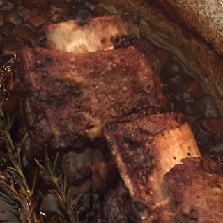 - Place short ribs back into the pan with rosemary and place into a 325 degree oven for two and a half hours. Just leave it be and let the magic happen. Slow and low, that is the tempo.