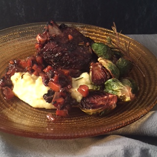 To serve; spoon polenta onto the plate and top with a short rib. Spoon the sauce over top and add your vegetable. This meal is rustically beautiful and will knock the pants right off of your guests. A few choice cocktails and it’s time for the pants off dance off! Enjoy this, my lovelies. We certainly did. Swearing Mom out.