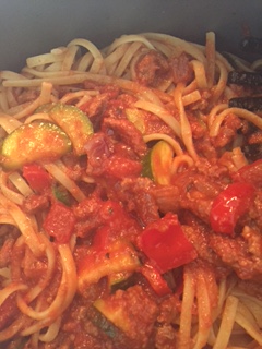 Ok? This is SUPER easy and quick week night spaghetti. Don’t get hung up on the details either. You don’t like onions or peppers? Use mushrooms and olives, or just diced tomatoes. I was out of spaghetti and thought “crap, what am I gonna use?” Then I saw linguini… Screw it! Who needs spaghetti?? I would have used the orzo if I hadn’t found a more appropriate pasta. Why? Because no bullshit excuses around here! When life hands you lemons, you make some lemon drops, bitches! Or, in this case you make orzo spaghetti! Bon Appetit!