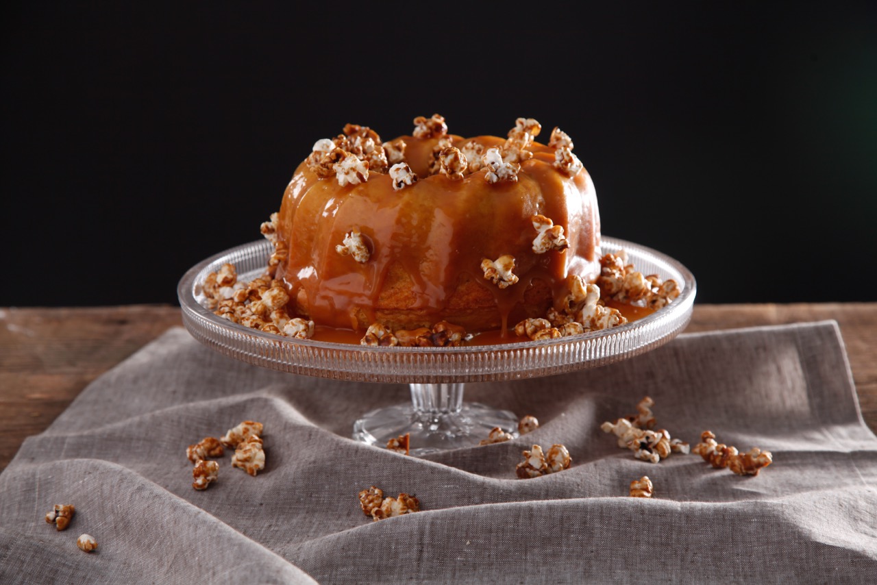 Yep! You read that right, I said Caramel Corn Butter Cake! I can’t think of a more delicious sounding sentence, can you? We had a work event and I wanted to bring something especially decadent… This fit the bill. The buttery flavor of the bundt cake, the caramel topping, combined with the caramel corn was a flavor and textural explosion! Not only was it delicious but, it was also exceptionally lovely. Golden and unique, this cake is a show stopper!