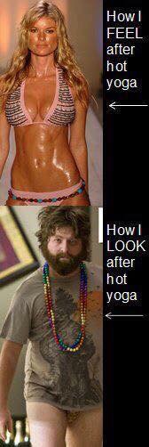 I went early enough to be able to sit in the room for about ten minutes prior to class starting. I wanted to get acclimated to the heat. Mind you, my goal for my first day back was to be able to stay in the room for the duration of class. No problem, right? Wrong! The very first time I attended a class, I ran for the door about 60 minutes in. I felt faint and nauseous. I came back in, though and the next class was a bit easier and I stayed in the whole time. The next milestone was to at least be able to attempt every pose… we’ll get to that later. I felt amazing as class began. I was back! I was focused on myself in the mirror and was correcting and adjusting each pose as I went. Following Jeff’s directions; clenching the thigh muscles, pushing my hips forward, keeping my weight on the heels of my feet, taking care to align my hips and shoulders. I was DOING it! He even remarked “you haven’t missed a beat, Jenny!”. Oh sweet Jesus! He complimented my efforts, for joy! Uhhh, you just wait, Jeff… There’s more coming, and it’s going to look a little more like a shit show. I kept going… I’m super glad that he complimented me on pose three, because by pose five, I almost died. Yep. I’m pretty sure I saw the grim reaper himself pass behind me in the mirror. I took a knee. This felt a little like defeat, but then I reminded myself of my original goal… to stay in the room. I stood again. I wrapped my arms in knots, I squatted and twisted my legs like ropes. I stood there, sweat dripping from EVERYWHERE and felt strong again. I didn’t even notice the contorted flab of my upper arms, I was THAT focused. Again… I was DOING it! Somewhere in the next few poses, I lost my mojo again. I’m fairly certain that it could have been found in the pool of sweat that was steadily collecting at my feet. I took a knee. I was pretty checked out for the rest of the class. Sips of water and focusing on not passing out is what became my main job. Then… when I thought I couldn’t stand it any longer… SAVASANA. Yes! I made it! And I didn’t die!!! Ok, I’m being dramatic, people don’t die from hot yoga. Do they?