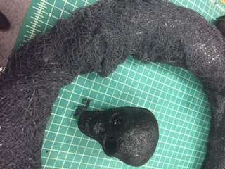 - 3 styrofoam skulls. Also from the dollar store. Maybe you want colored skulls, be creative and do YOUR thing.