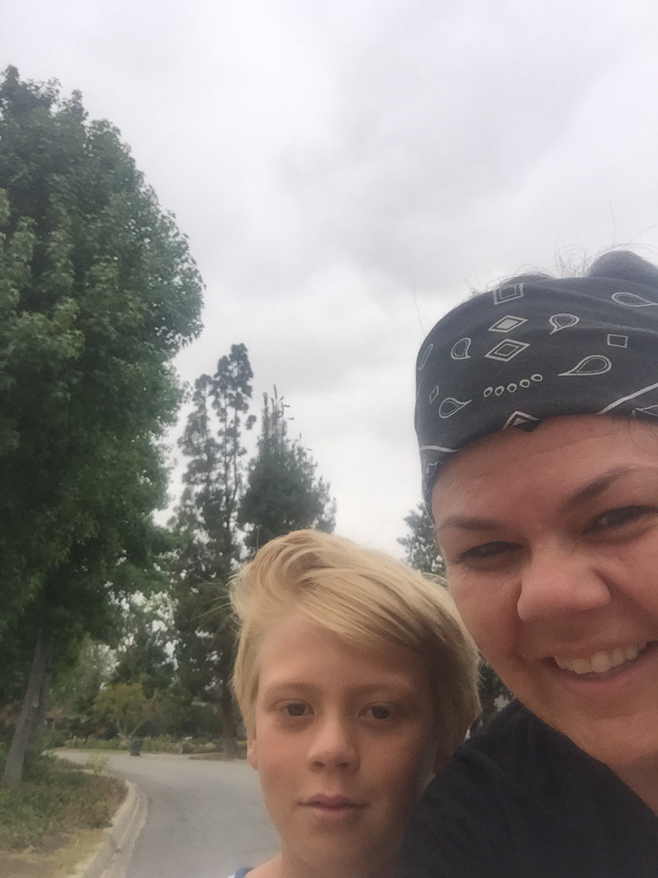 When I moved to Southern California I lost nearly 60 pounds. Let that sink in… 60. That’s more than my five year old weighs… and I lost it. I was heavy. I am perfectly aware of the right way to lose weight. I did it the right way. Somehow, somewhere along the line, I lost focus and I have put nearly half of it back on. Terribly frustrated, it’s very easy to fall into a self-deprecating inner dialogue but, I try very hard to avoid that. I love me and anyone who knows me probably knows that my self-esteem is not the issue. But, that’s not to say that I don’t see who I am. I see my large cellulite riddled thighs and I don’t like them. I see my bingo wings and know that there isn’t a tattoo in the world that would make me love those arms. I also see ME. My value is not based on my weight or my ugly legs and I KNOW this. I have a husband who never tires of expressing his attraction toward me. So, my positive self-worth coupled with my husband being down AF, is somewhat of a hindrance in the motivation department! What does that mean? It means that I have to find the motivation from a positive place within myself and that, my friends, is easier said than done. Today that motivation came from me in part, but my oldest son really helped me seal the deal. “I’ll get up and go with you, mommy. It will make you feel good. Let’s do it, ok?” this… this is what that child said to me in all of his ten year old wisdom. I’m so lucky to have him.