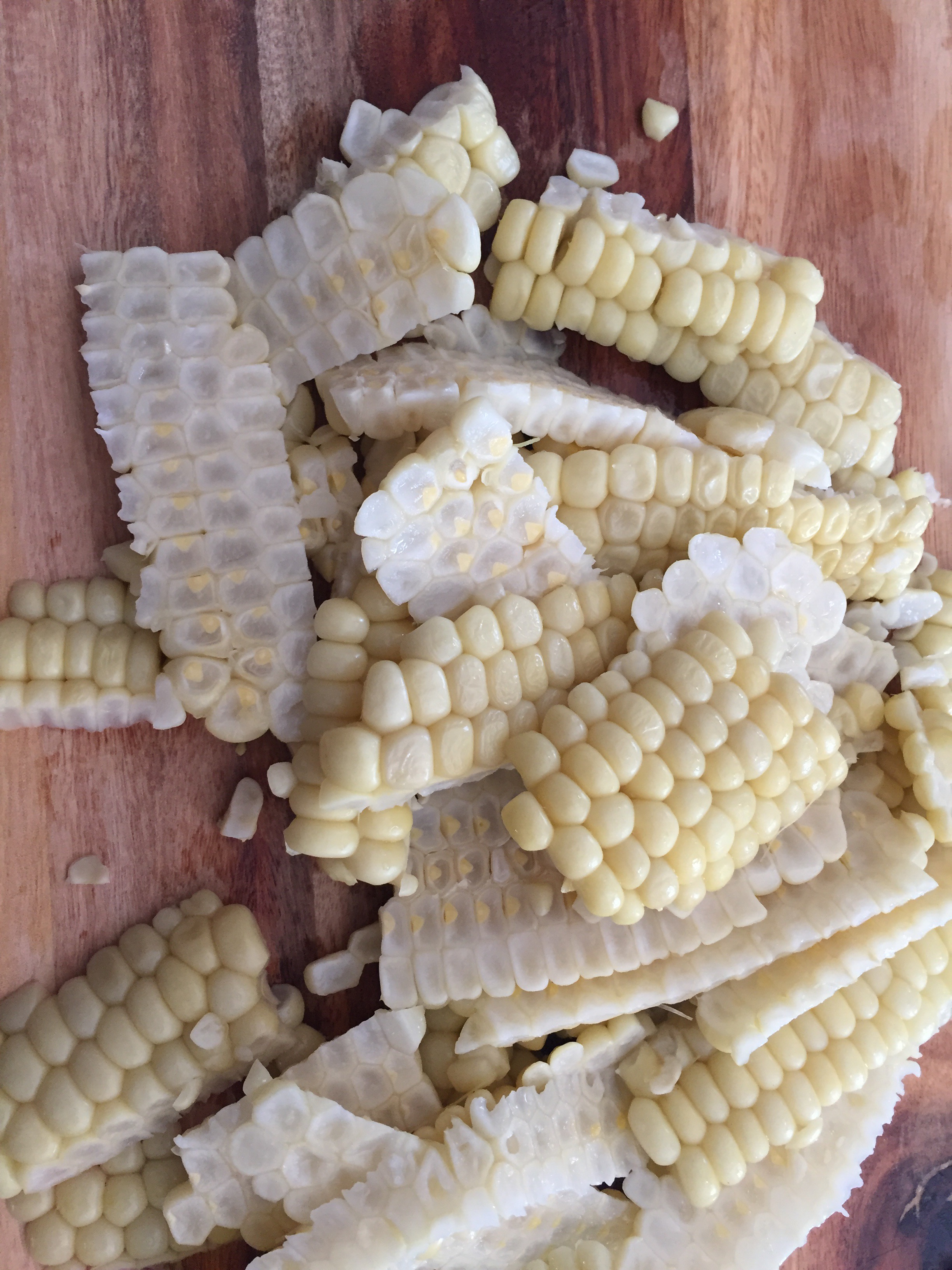 • Two ears of corn cooked and kernels removed from the cob. About 1 1/2 cups.
