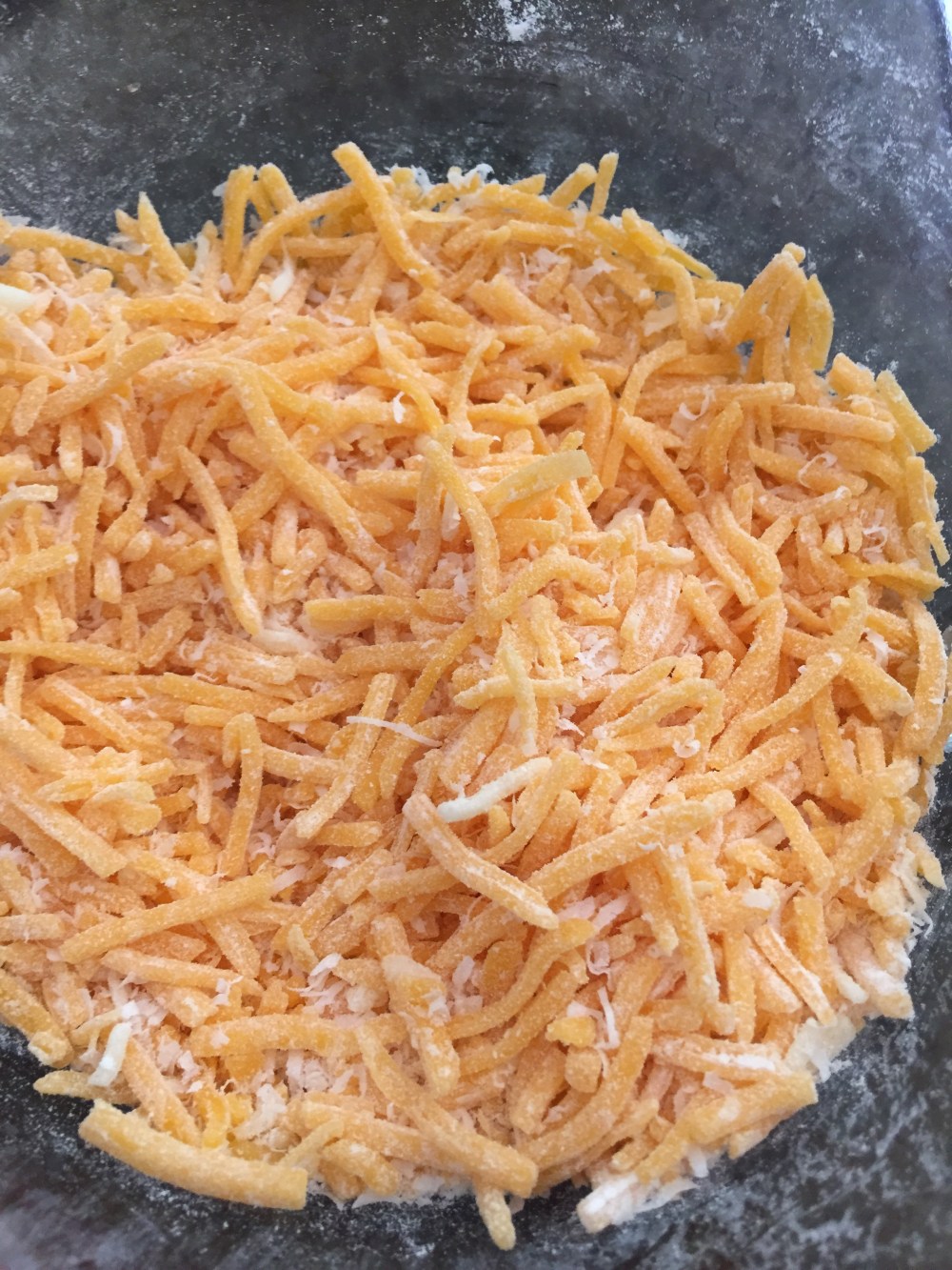 3. In a medium bowl mix cheeses, a few grinds of black pepper and flour together until combined.