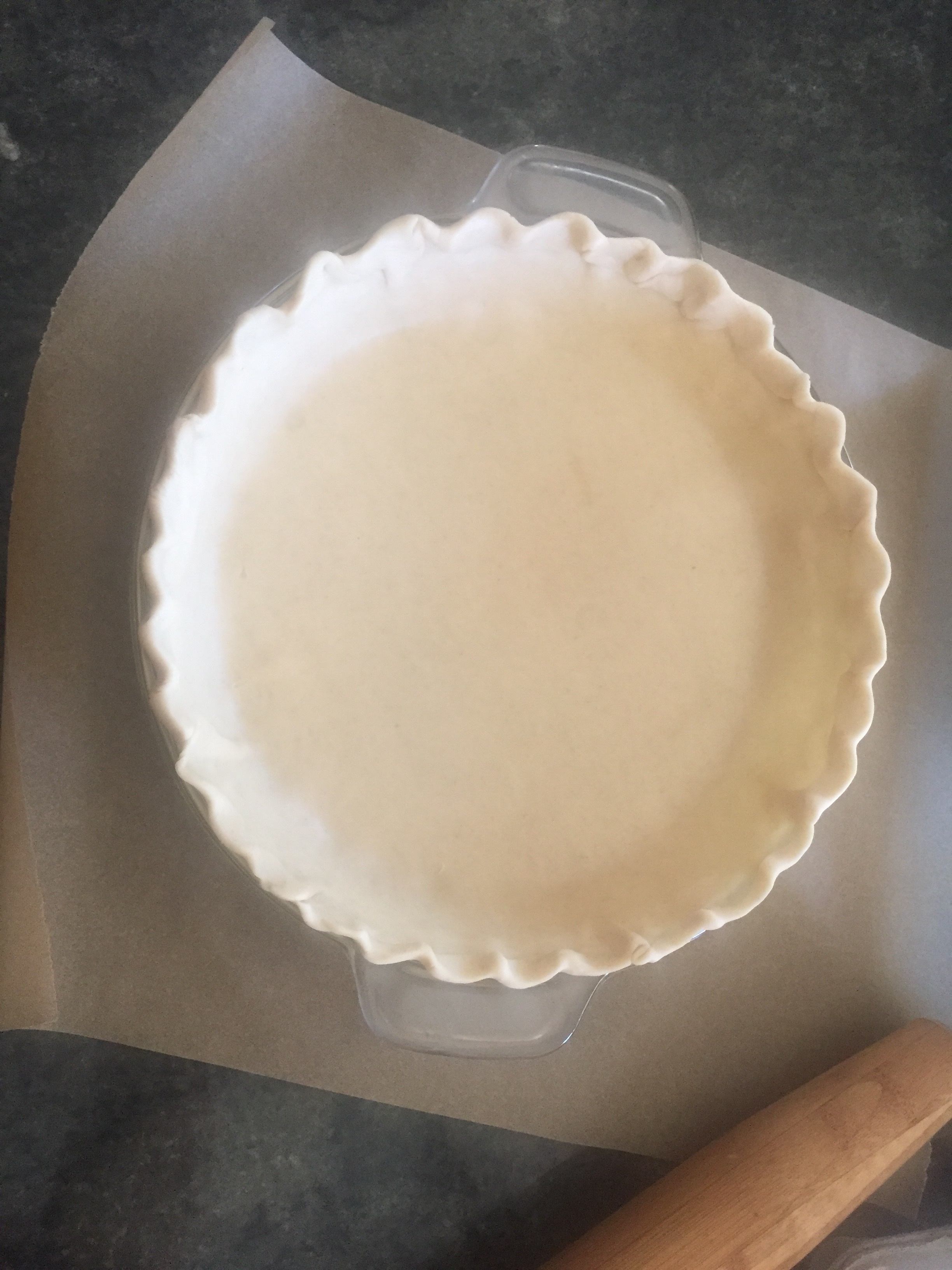 - Prepare the pie crust in your dish.