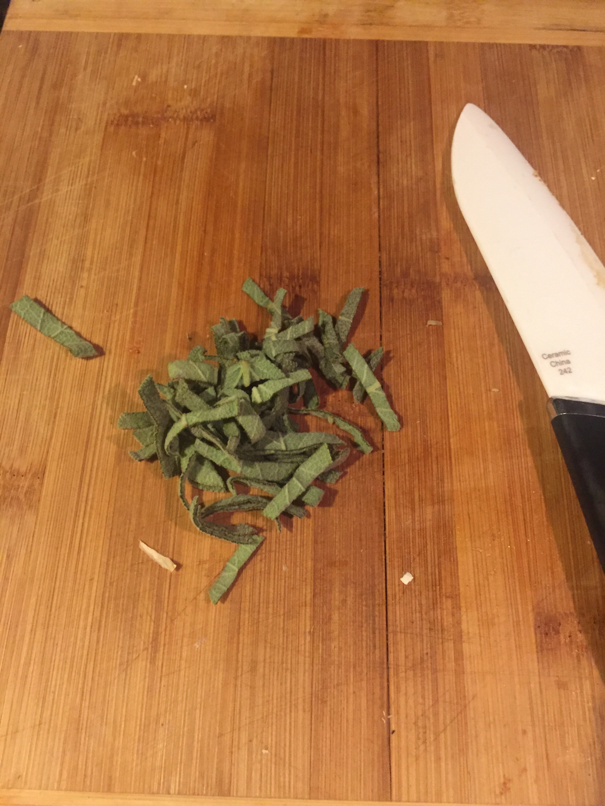 - 7 leaves of fresh sage, cut in a chiffonade (or thin strips of you’d like to avoid pretentiousness)
