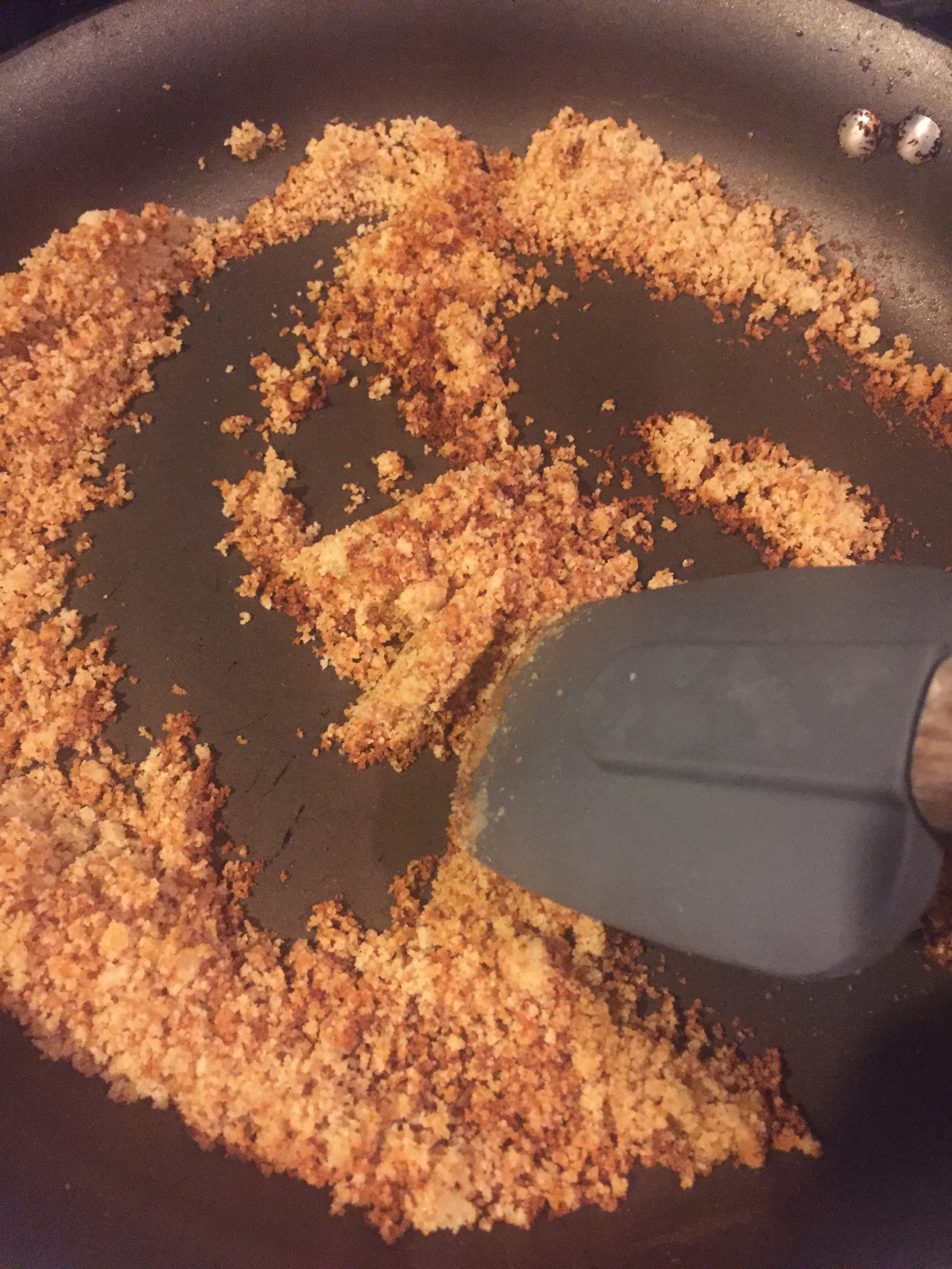 - Once combined, transfer to a serving platter or bowl and top with bread crumbs and chopped parsley. Serve immediately.