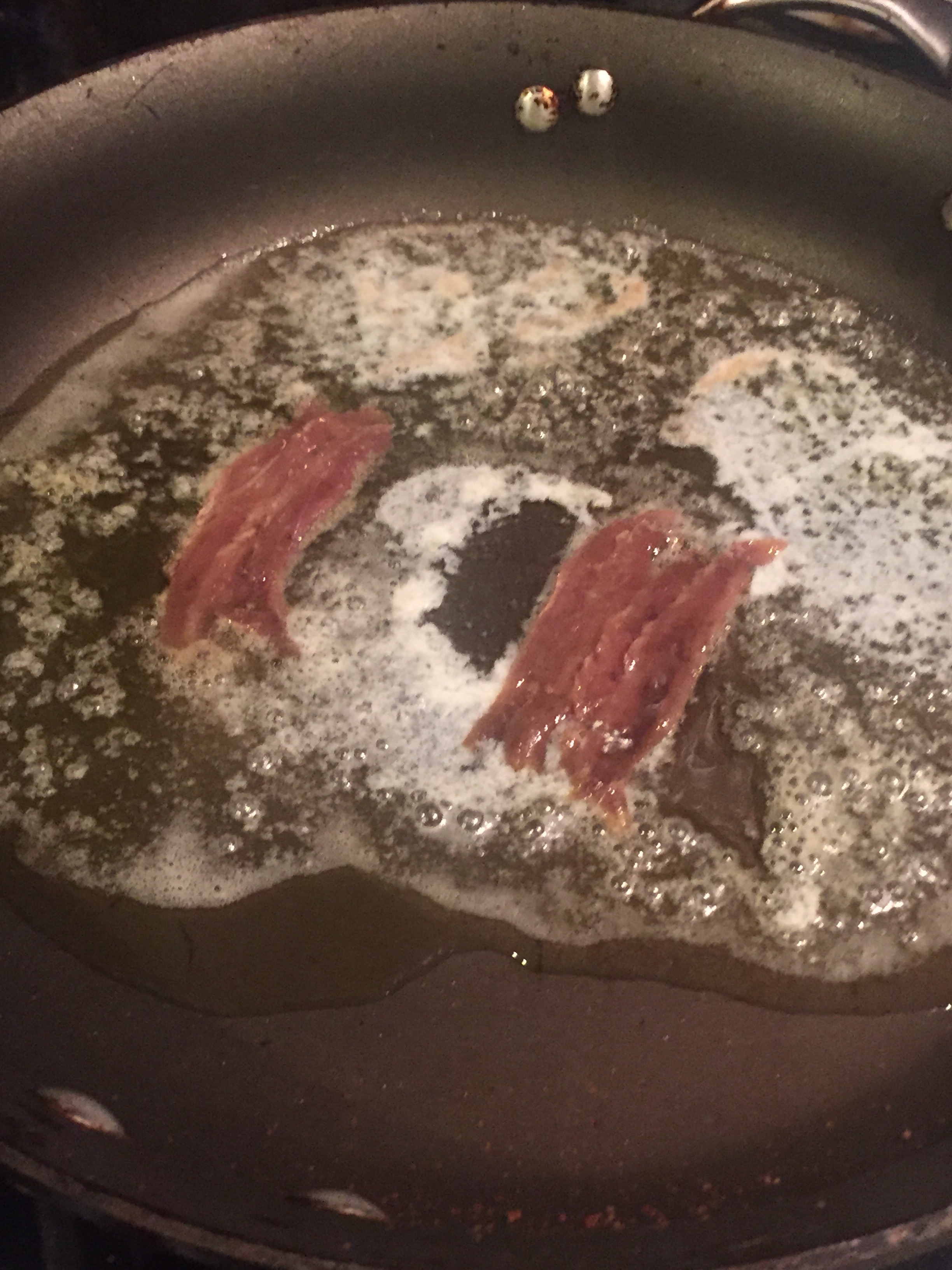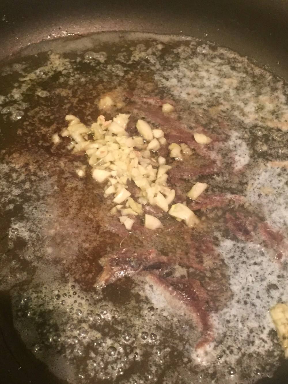 This is how the “sauce” should look when ready. The butter has browned slightly and the anchovies have melted in and become a salty nutty goodness at the bottom of the pan. Fuck yes!