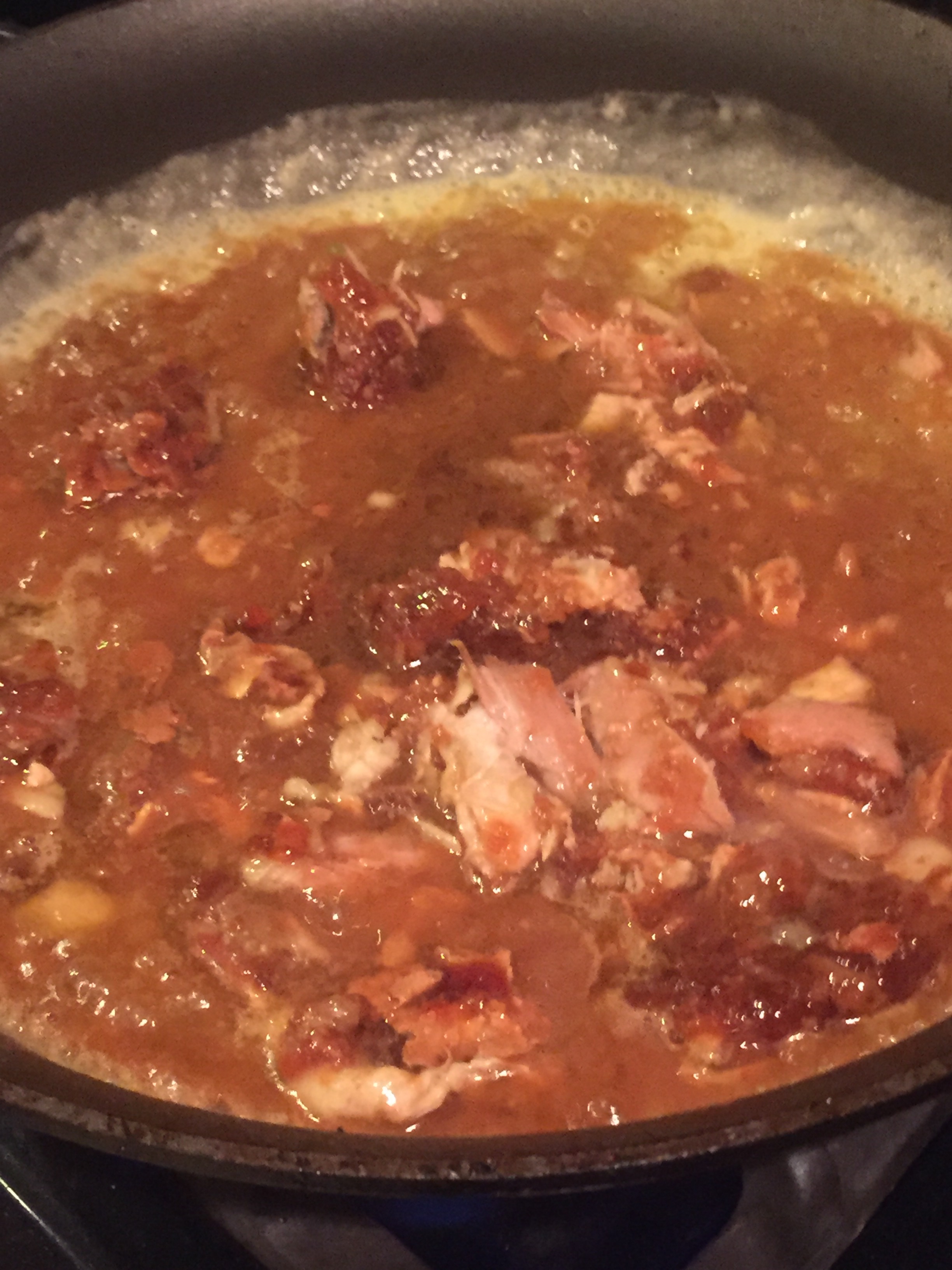 - Reduce heat to a simmer and cook the sauce down to thickened.
