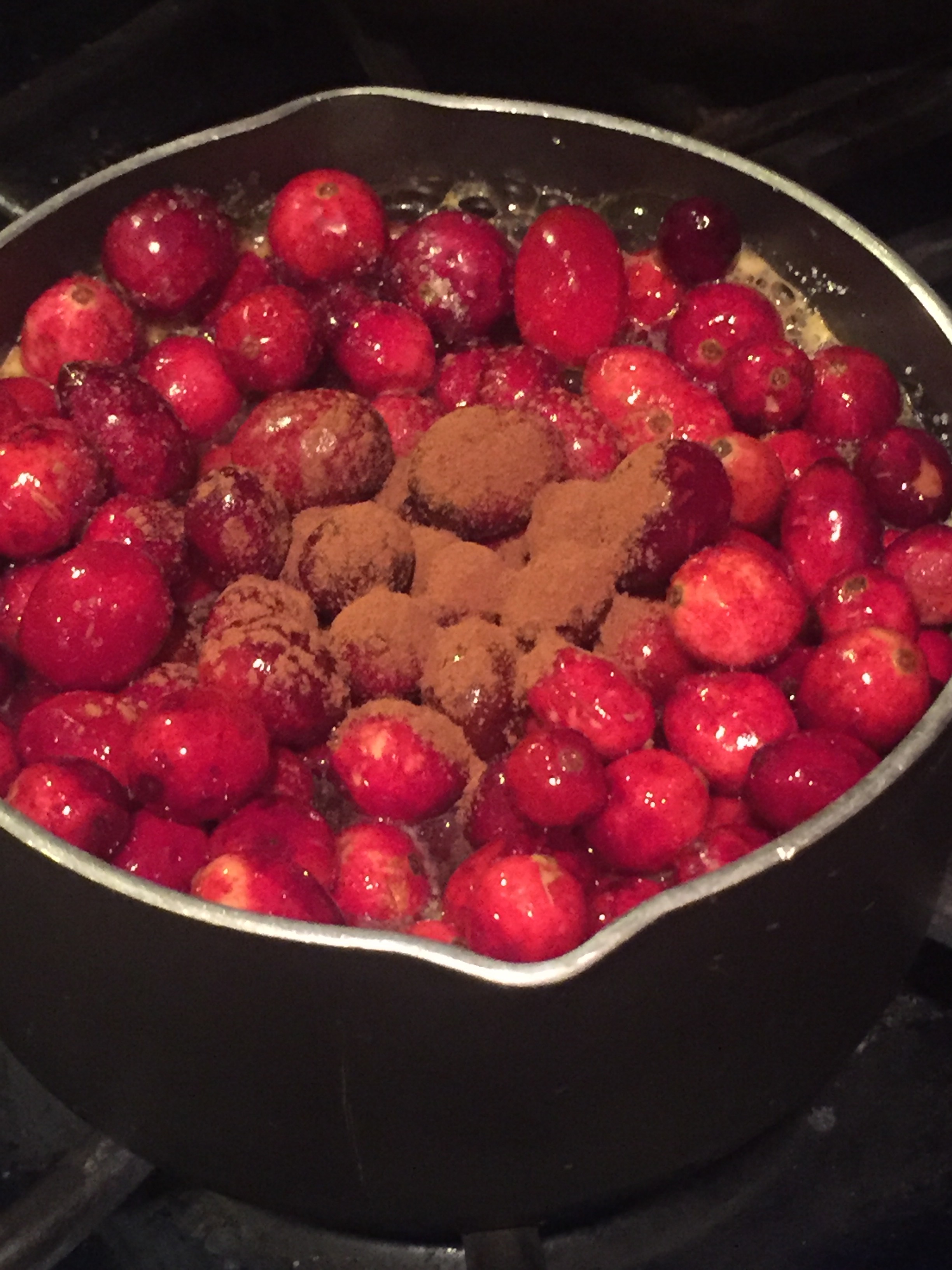 Cranberries have a lot of pectin in them and will eventually turn into that jelly consistency that we all love. This is so easy there’s to reason to ever buy canned again. Swearing Mom out.