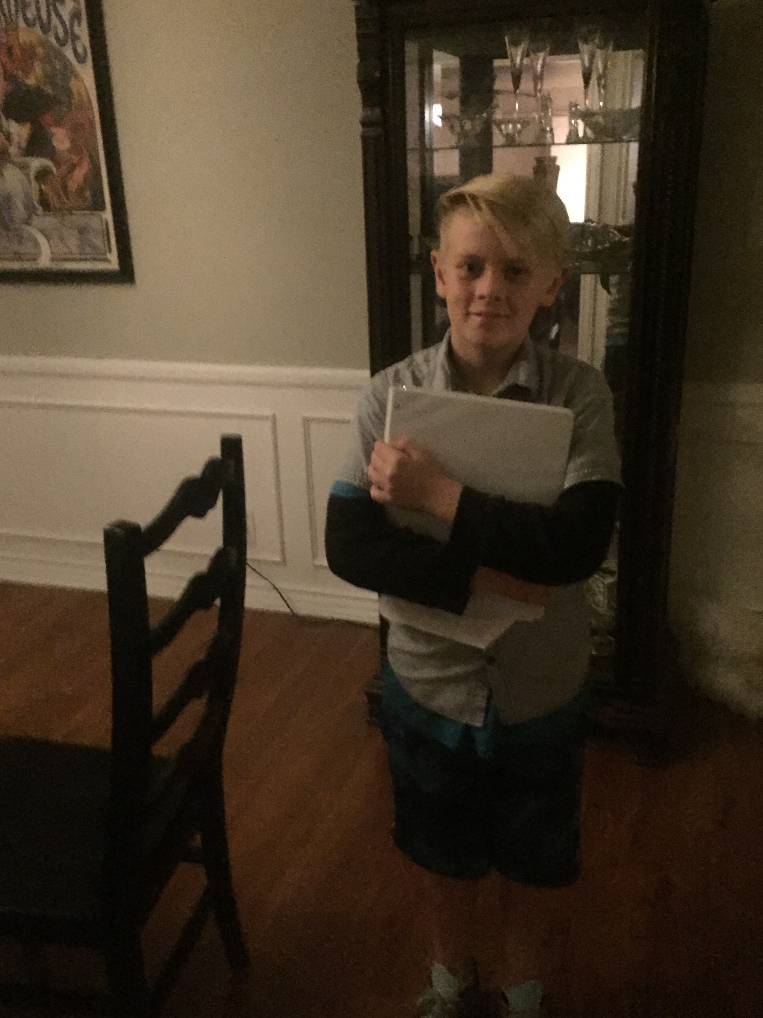Shortly before I left work, I got a text that read “Come in through the front door. Ring the bell.”. Well, this was interesting indeed! We use the side door as our main entry, but I’m game! I rang the bell and was greeted by the most adorable barefooted, miss matched, maitre d. He said “right this way”. Of course I quickly dropped my bags to snap a pic!