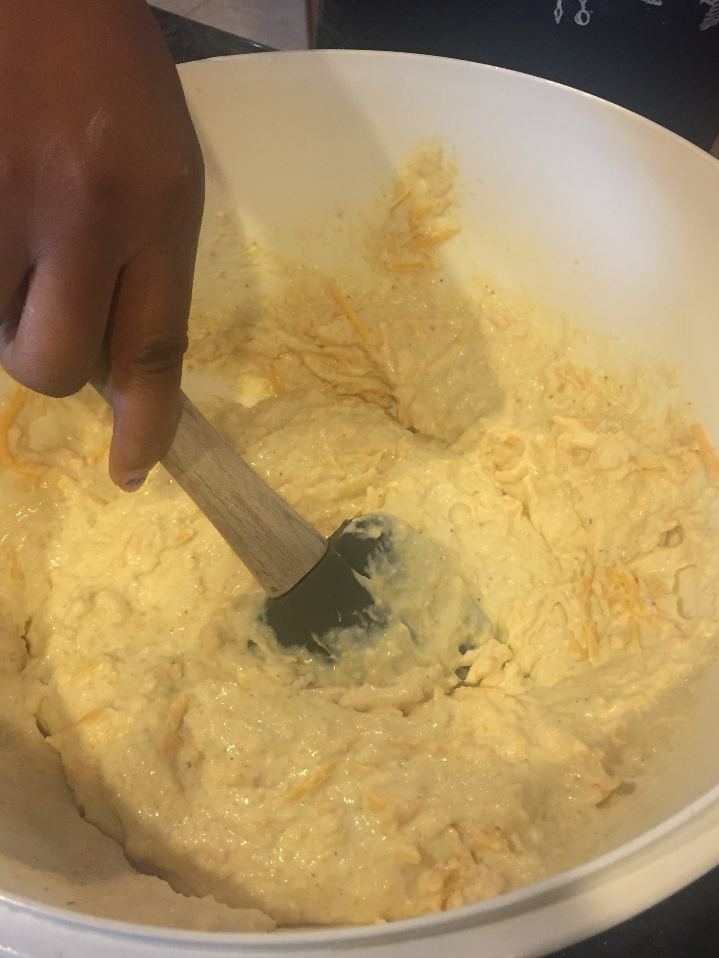 - Add cheese and mix once more taking care not to over work your batter.